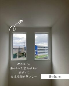 吹き抜けのあるお家、冬になると